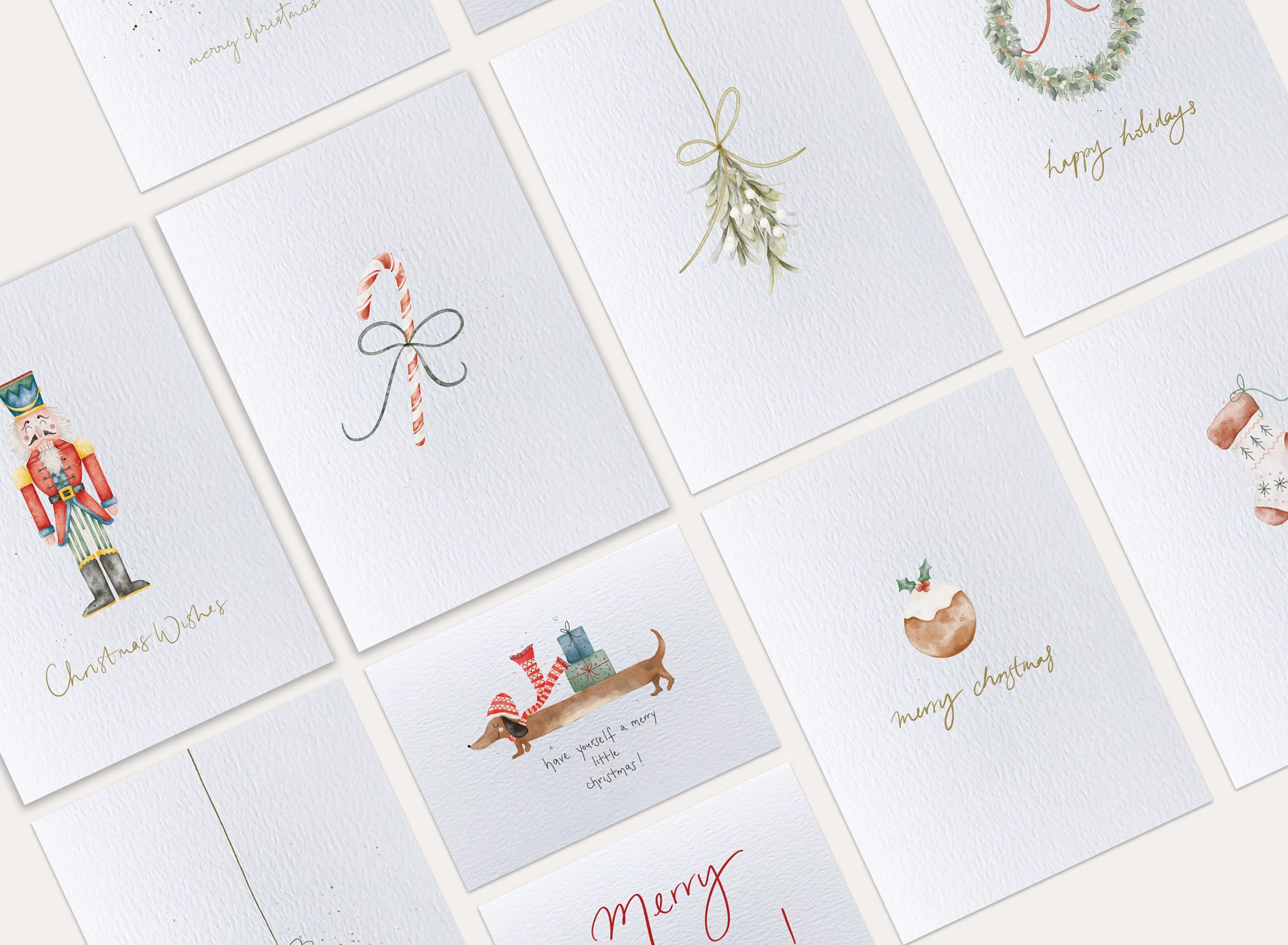 Make every message memorable with our hand-illustrated Christmas cards. Featuring classic festive designs, from wreaths and mistletoe to baubles and stockings, each card is crafted to bring elegance and warmth to the season.
